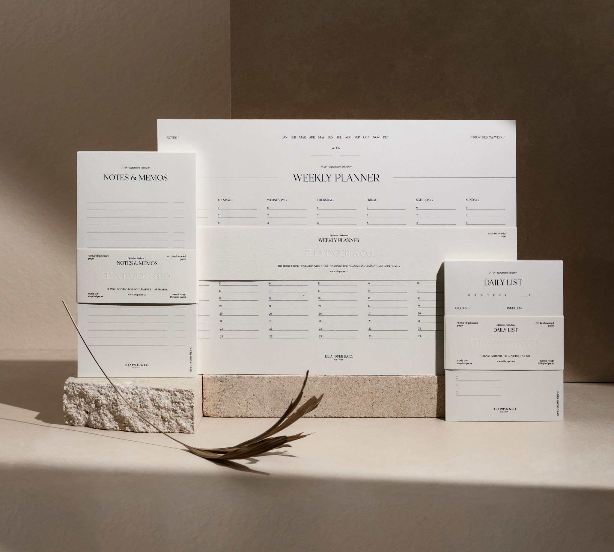 Egy céges logóval vagy egyedi dizájnnal ellátott ELLA PAPER & CO. prémium papírtermék diszkrét, de hatékony marketingeszköz. Az ügyfelek számára személyes és figyelmes ajándék. A kollégák felé pedig azt közvetíti: „Értékeljük a munkádat, és szeretnénk, ha inspirálóan indulna az új éved.”